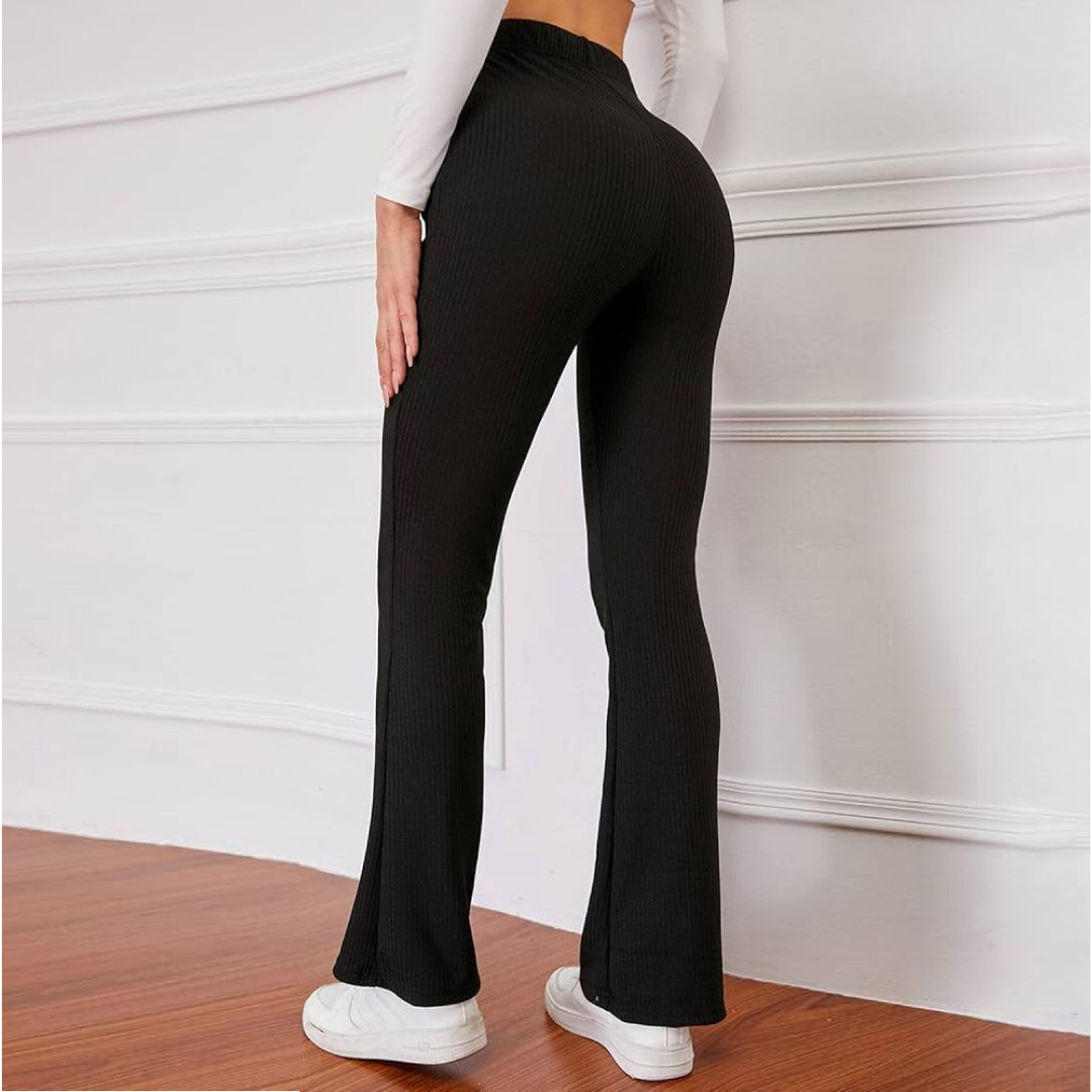 High-rise waist ribbed flare pant - Black