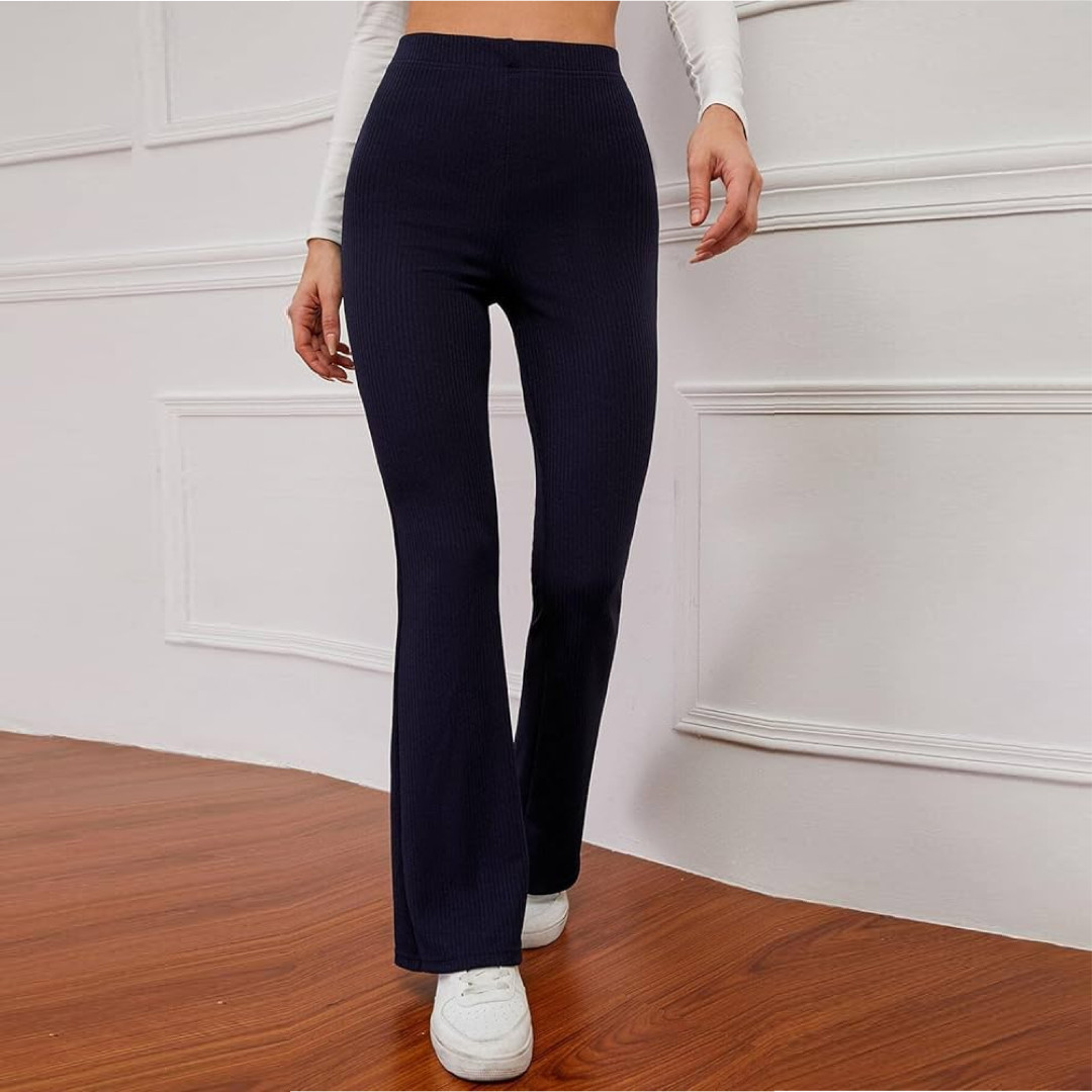 High-rise waist ribbed Flare Pant - Dark Navy