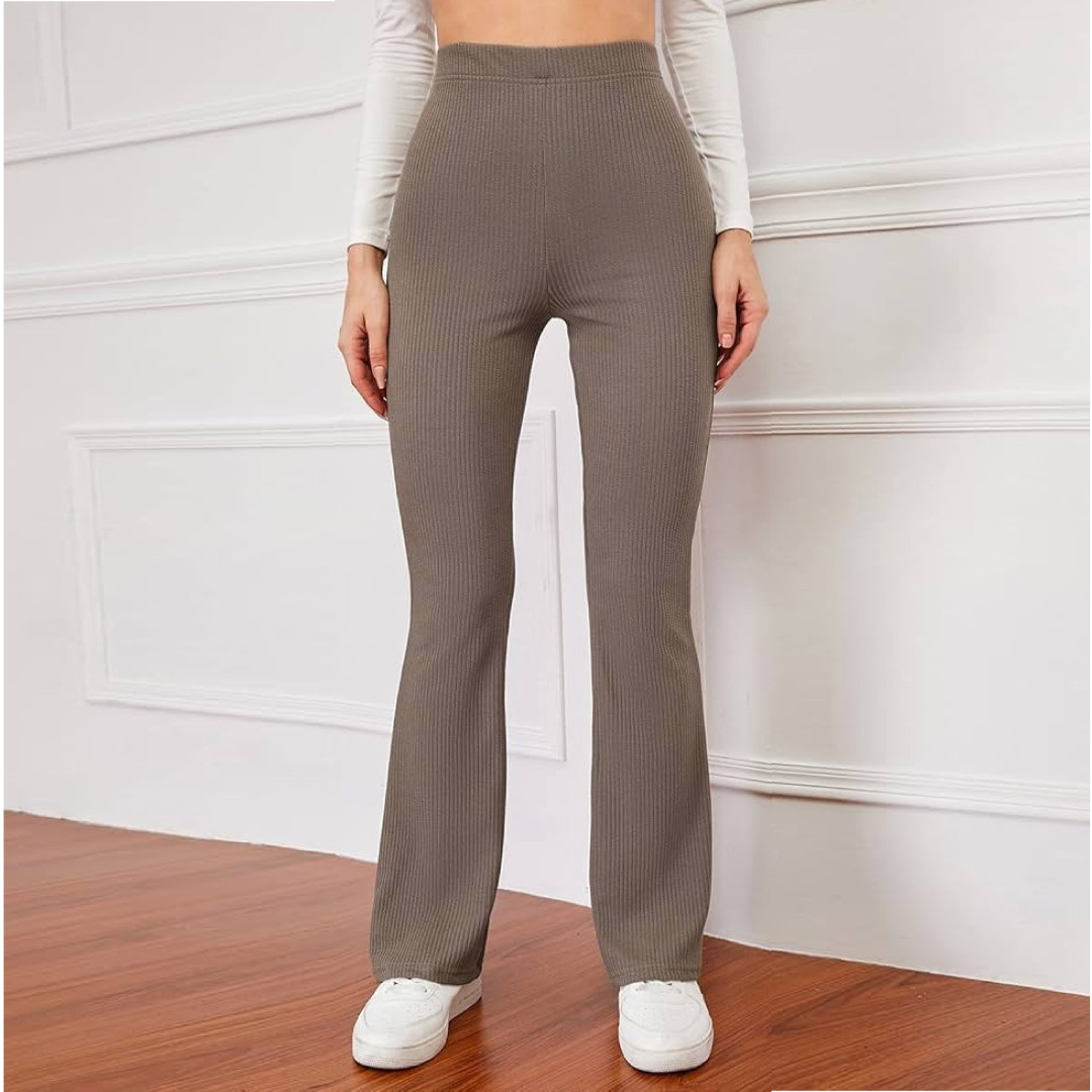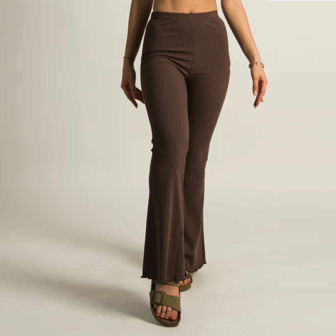 High-rise waist ribbed flare pant with bottom design - COFFEE