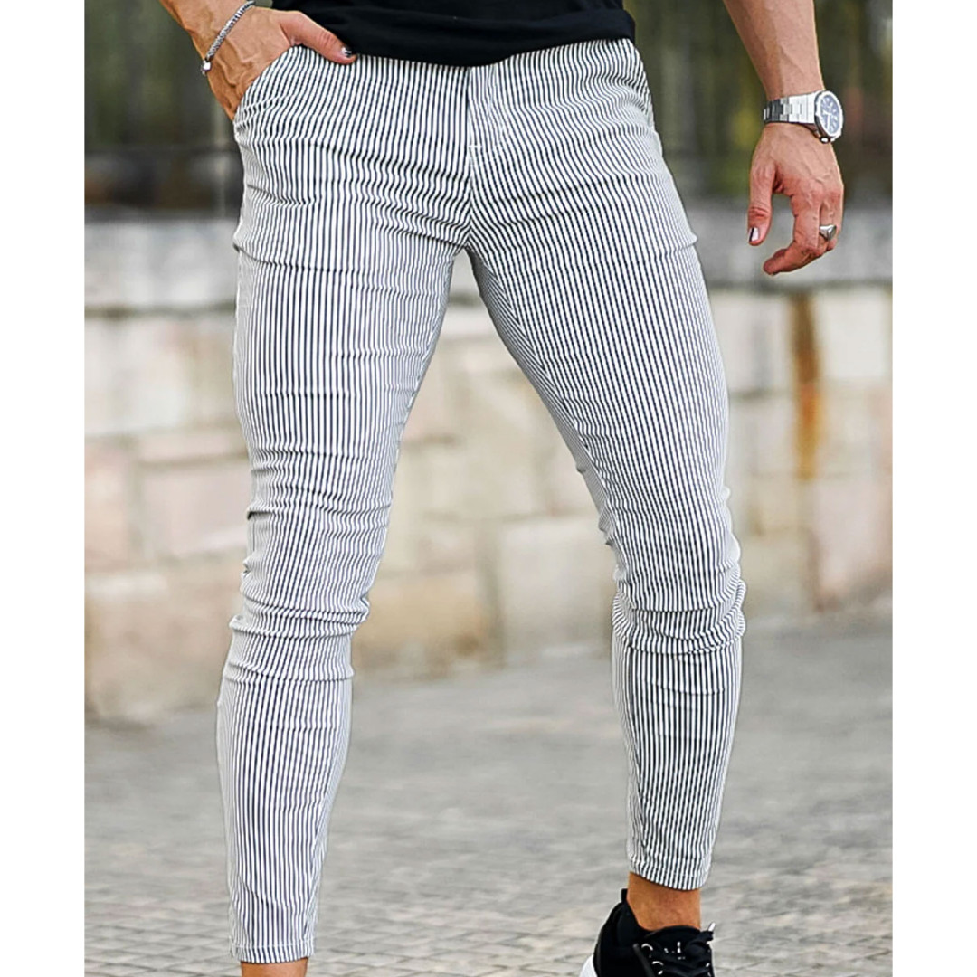 Mens Premium WHITE Stripe Texture Pant Cut Trouser