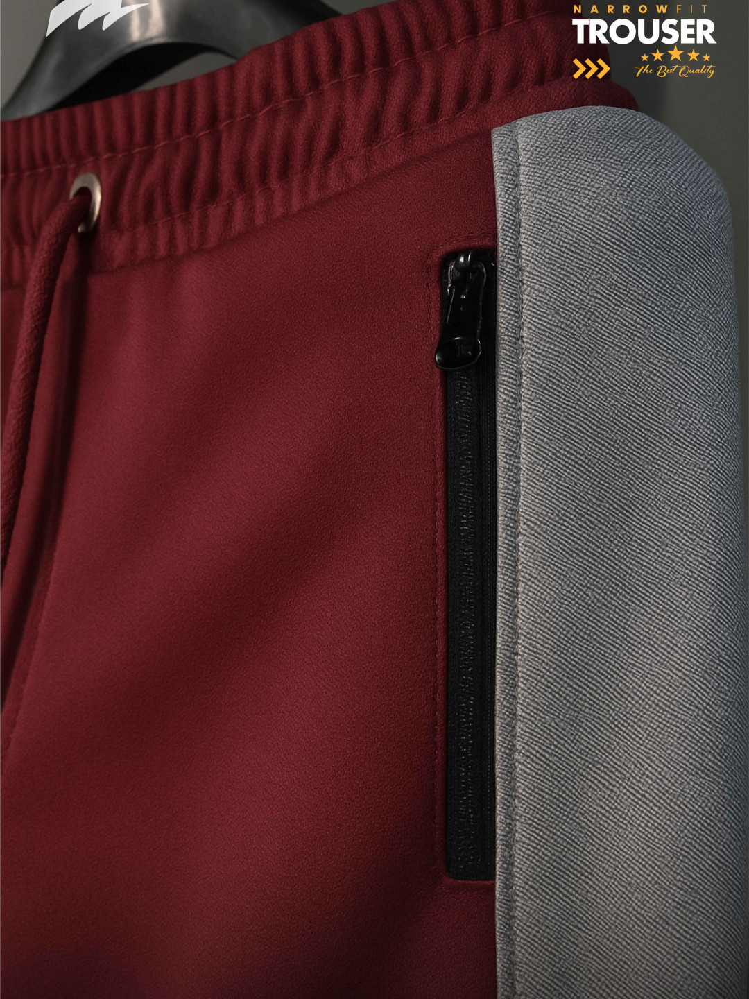 Narrow Fitted Contrast Premium Trouser - Wine Maroon