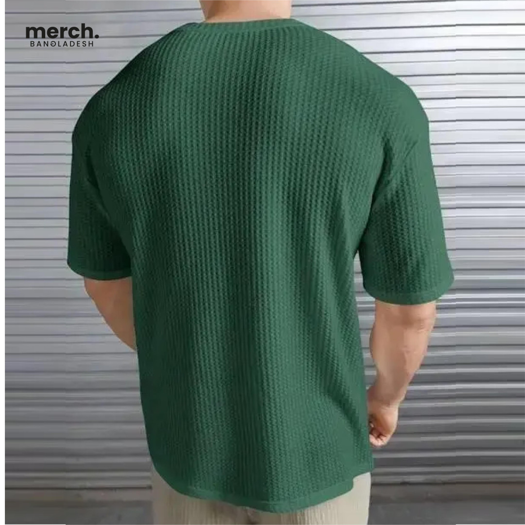 Waffle Knitted Drop Shoulder T-shirt - BOTTLE GREEN
