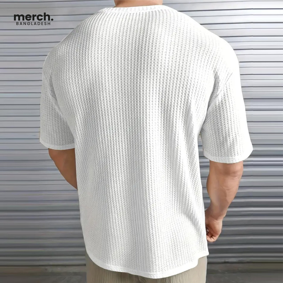 Waffle Knitted Drop Shoulder T-shirt - WHITE