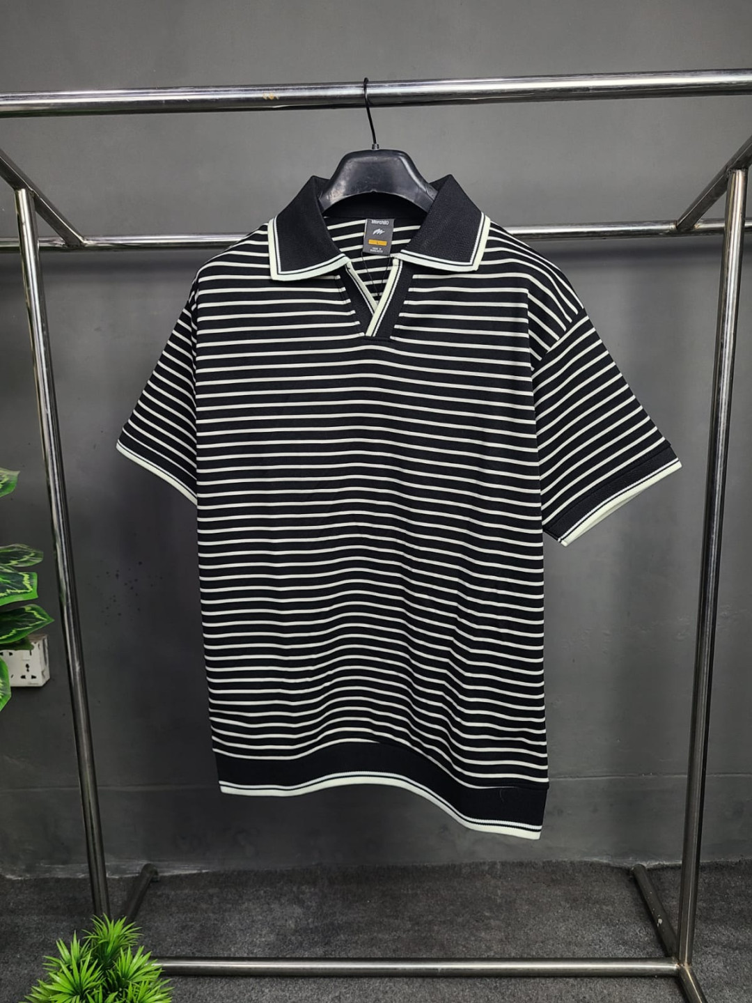 Black - Stripe Old money Polo (Semi Drop)