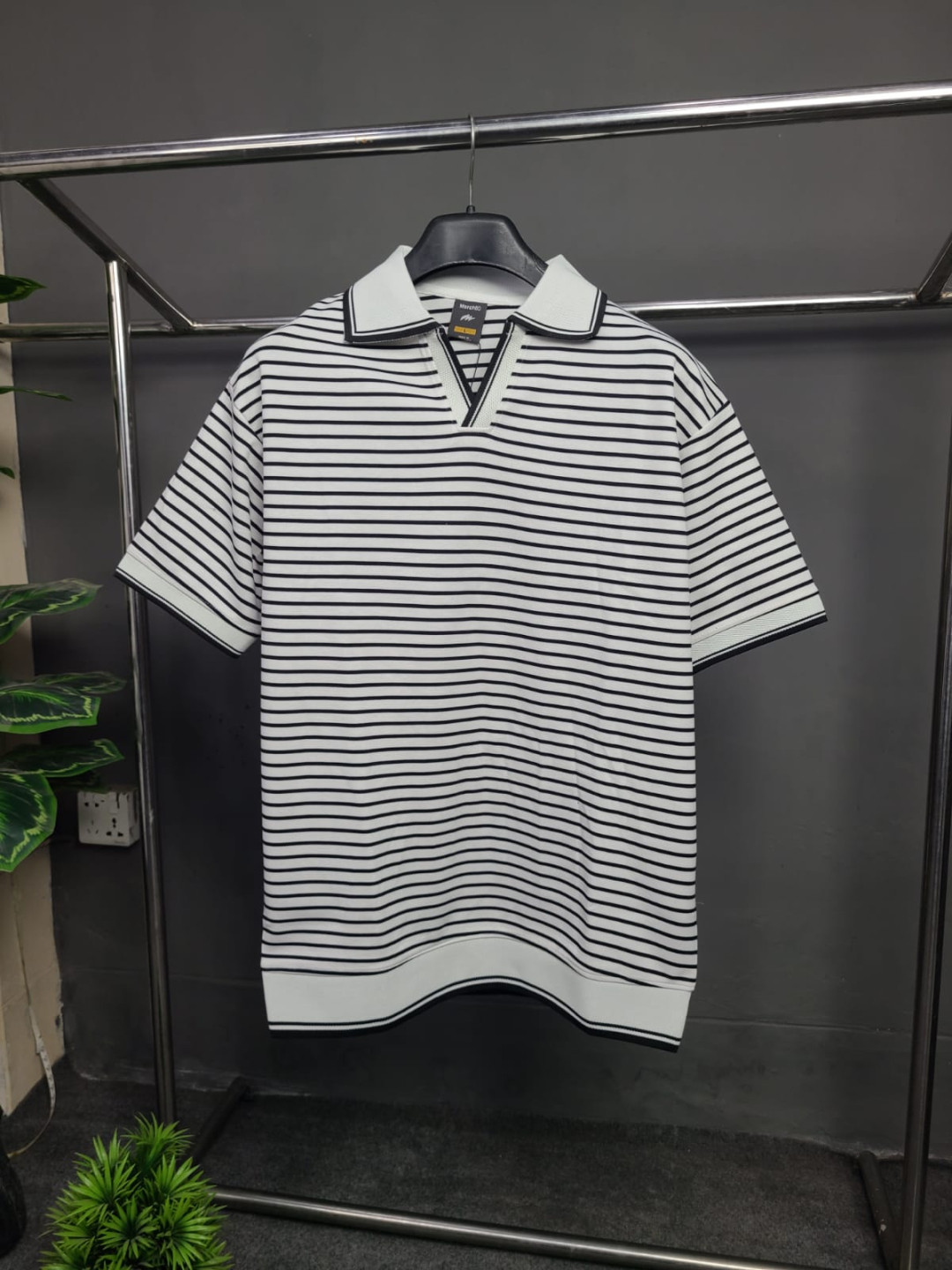 White & Black - Stripe Old money Polo (Semi Drop)