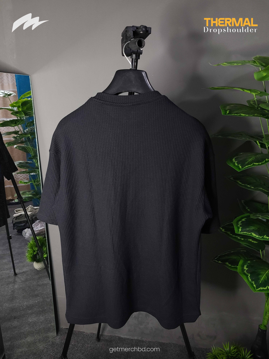 Black - Cotton Blend Waffle Drop Shoulder Tee